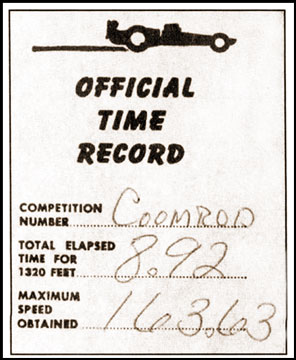 A: It was a 27 Model T with a 296 Flat Head. This was my first race car. A 28 Model A Roadster was my first car when I was 14.